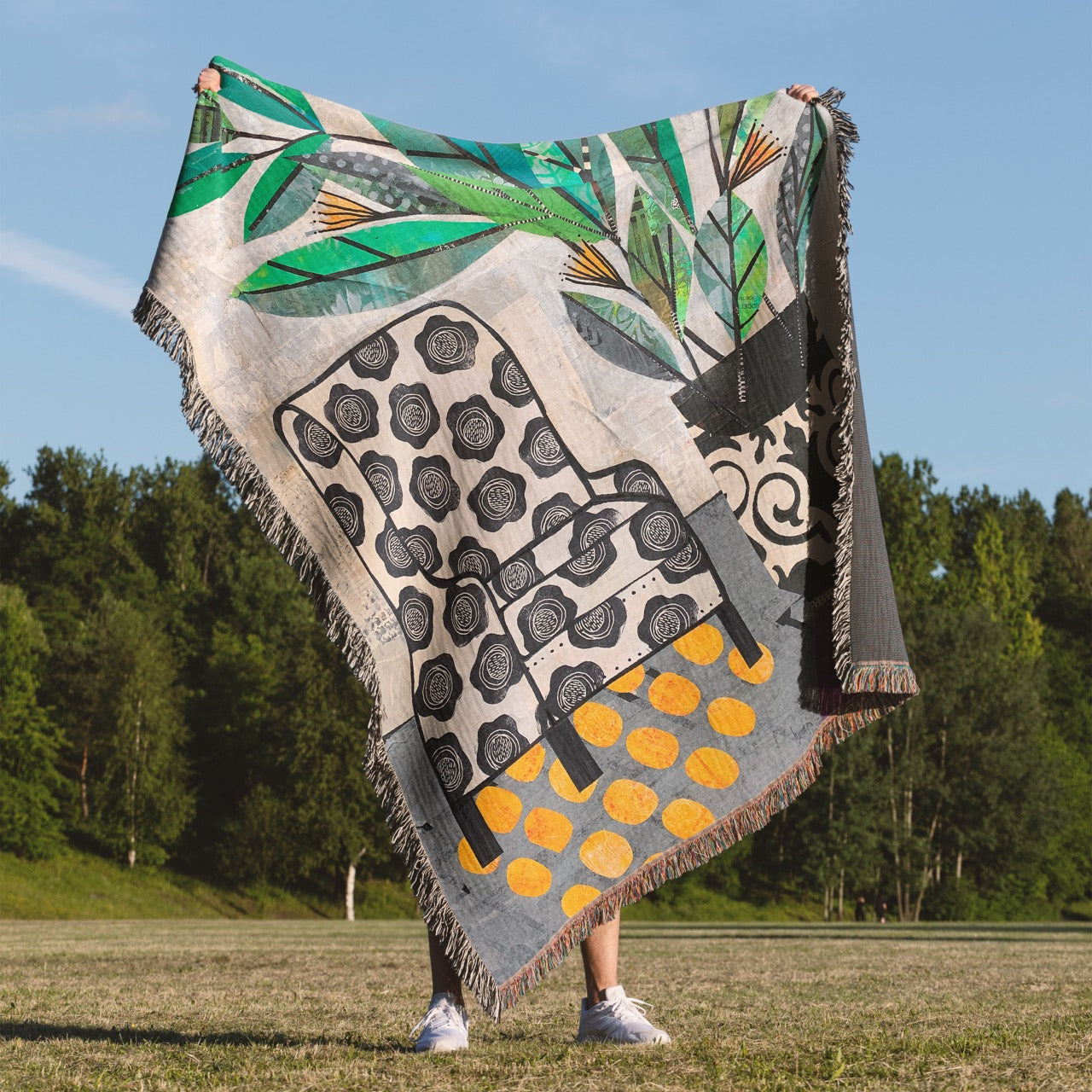 This soft "Favorite Chair" woven blanket is home decor that's both comfortable and versatile. Wrap it around your shoulders, toss it across your favorite chair, or toss it in a large tote bag for a picnic. Made of 100% pure cotton dyed in only 6 colors, it's crafted with an intricate Jacquard woven production process, rather than a printed technique.