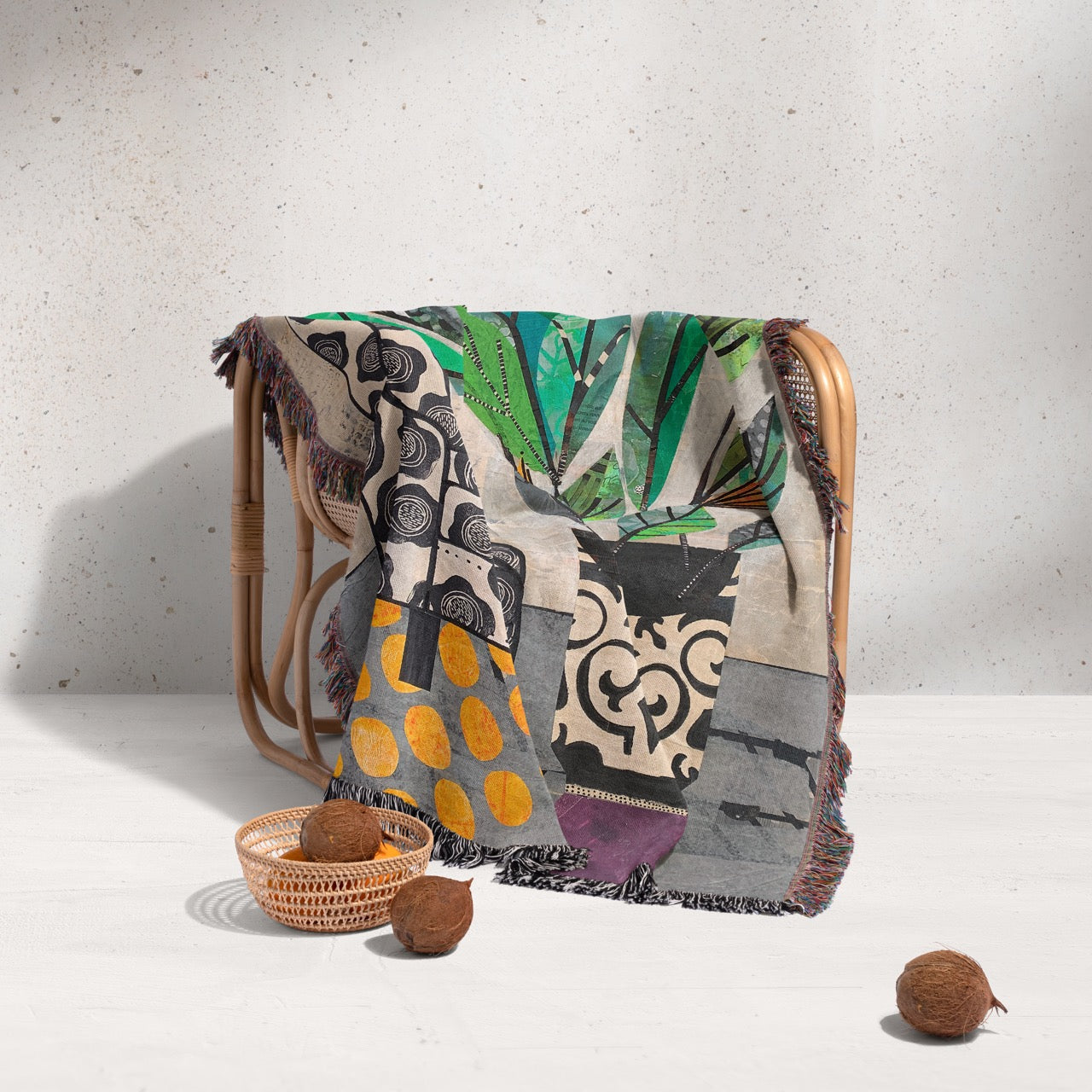 These custom Jacquard Woven Blankets are created from 100% recycled and organic cotton using only 6 colors. These colors combine to create a limited palette of beautifully subdued and muted tones.
