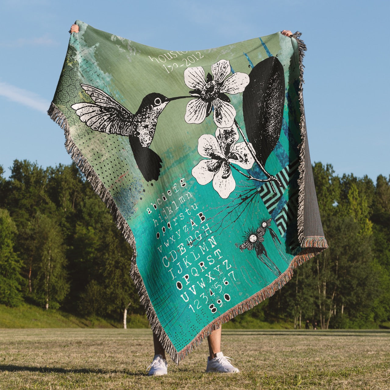 This lovely blanket, rich with subdued teals and greens, features the hummingbird. Seen as a messenger from the spirit world, it serves as a reminder that those we have lost are always, and quietly, with us. Comfortable and versatile, it's at home as a wall decoration, a throw for your sofa, or even a picnic blanket. This personalized blanket is made of 100% pure cotton that is dyed in colors to bring your unique image to life.