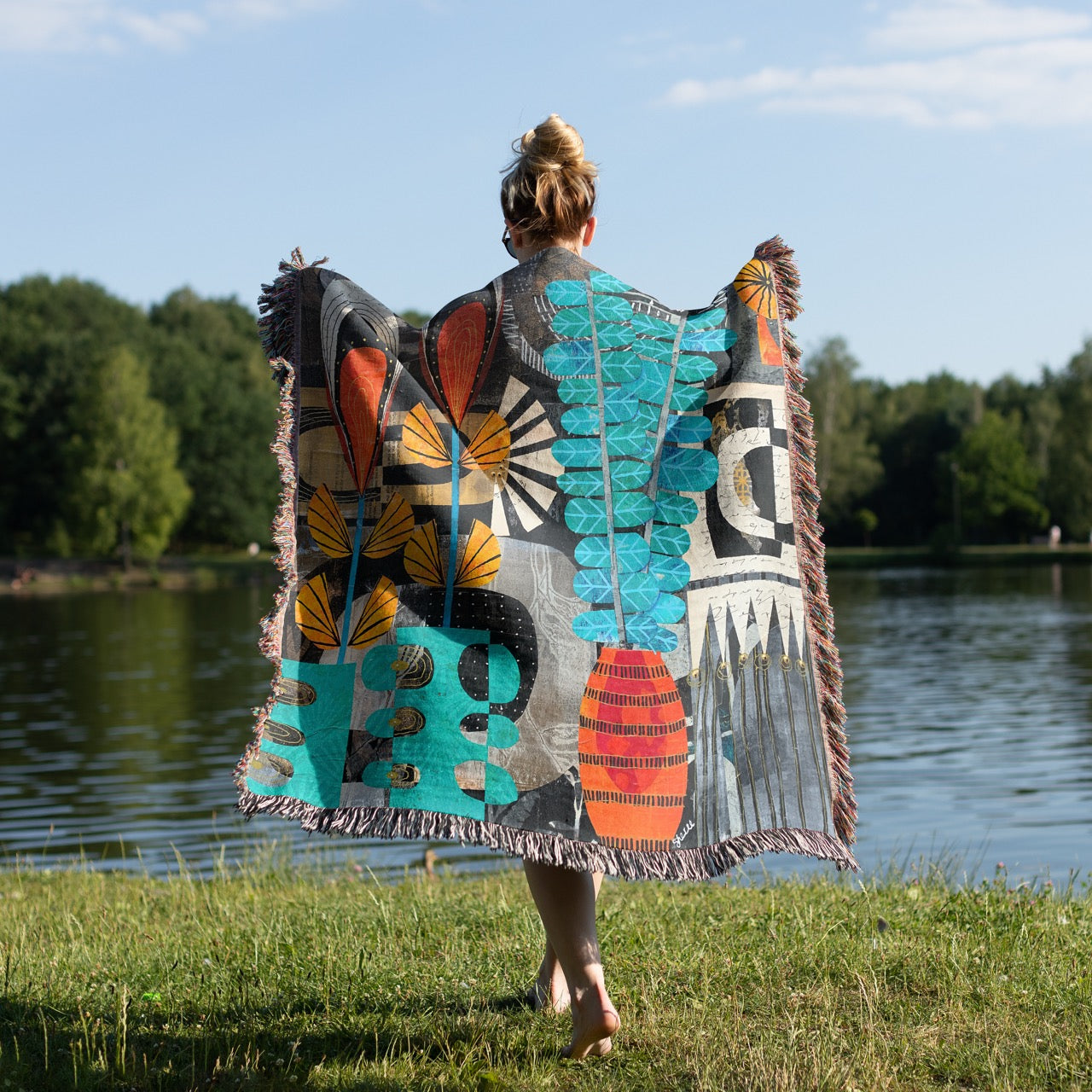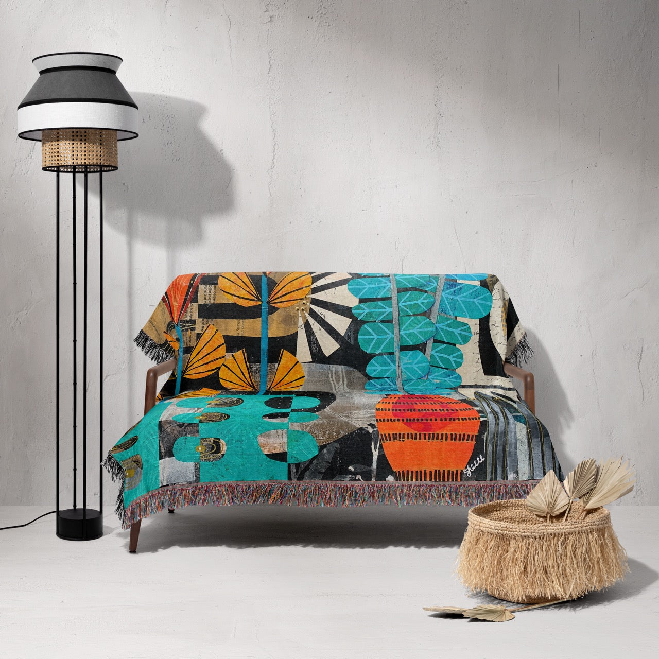 If you're a lover of color - you'll love our "Partial Sun" Jacquard woven blanket! Custom woven in striking colors like teal, orange, yellow, black & cream, this 100% cotton blanket is easy-care and goes from house to beach and back again. Use it as a wall decoration, a throw for your sofa or chair, or even a picnic or beach blanket. Made in the USA, this blanket will warm you when it's chilly and add a splash of color and texture to your living room, bedroom, and more!