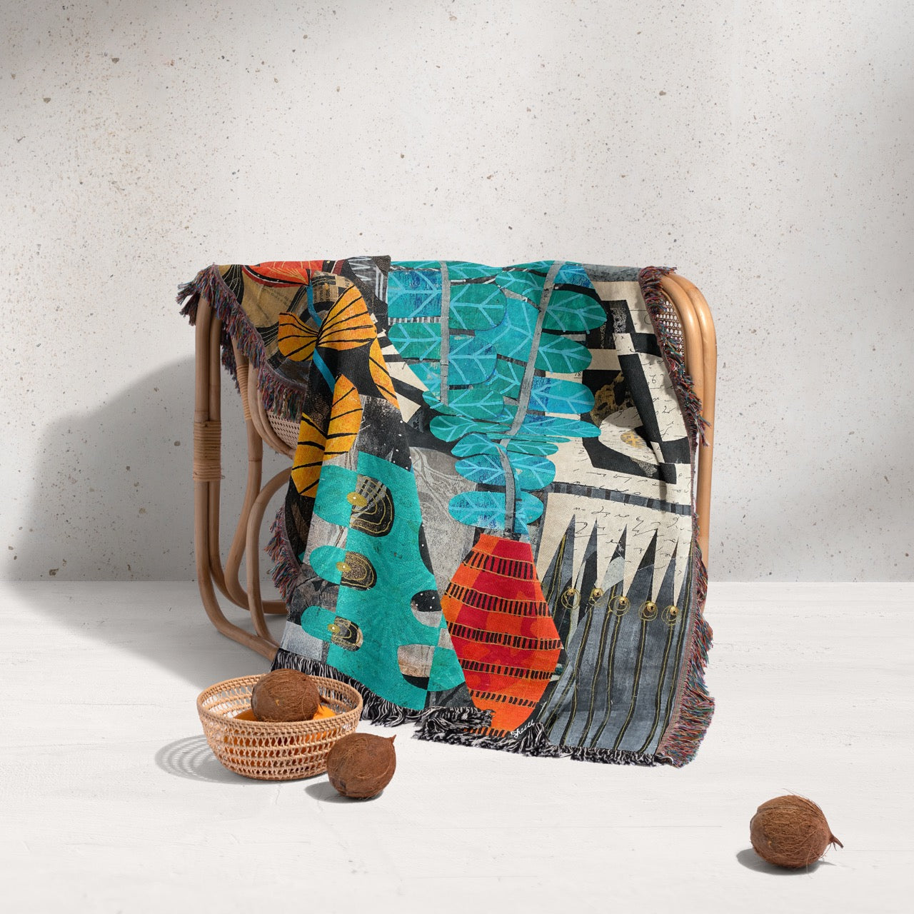 These custom Jacquard Woven Blankets are created from 100% recycled and organic cotton using only 6 colors. These colors combine to create a limited palette of beautifully subdued and muted tones.